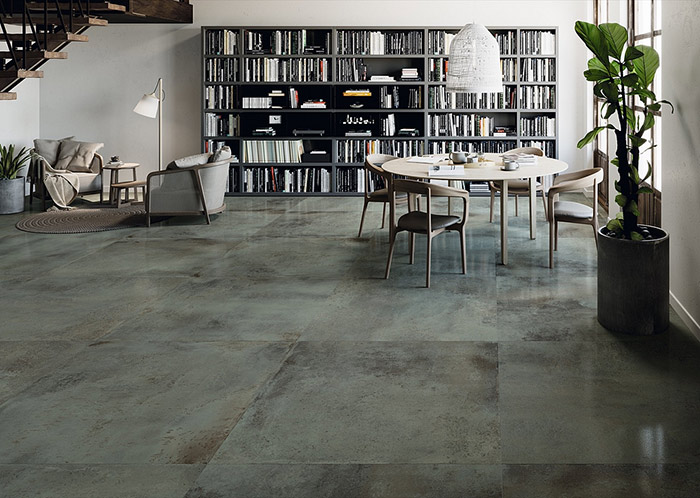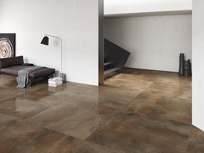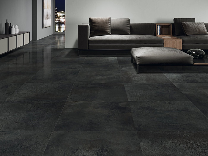 The Toledo porcelain stoneware collection expands on Stones King's range of metallic textured tiles. Toledo porcelain tiles are available in four colors with visually textured surfaces, which recall the look of metal sheets that have been exposed to outdoor weather conditions. Toledo porcelain tiles have a polished finish and include three different sizes.